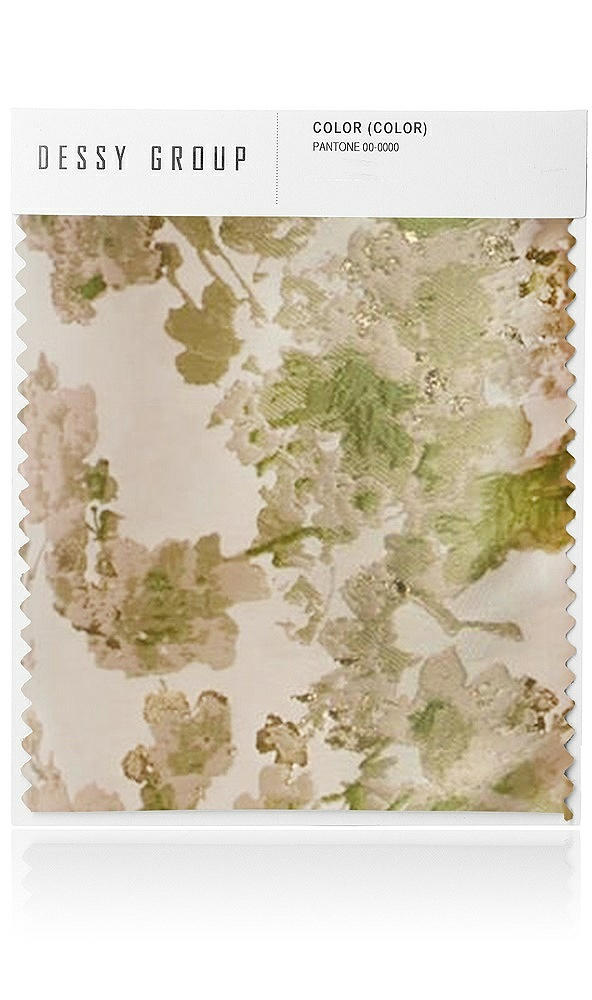 This fabric swatch showcases our luxe, romantic Abstract Floral Jacquard fabric. An artful fusion of blush pink, metallic gold, and soft green that feels both romantic and undeniably glamorous. With its satiny finish and sculptural floral texture, this jacquard fabric captures light beautifully from every angle.