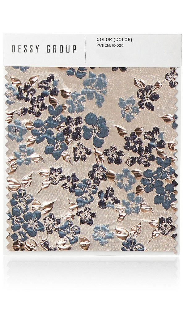 This fabric swatch showcases our ultra-glam Gilt Indigo Brocade fabric. The rich tonal blue florals—from deep to dusty blue—are intricately woven among metallic rose gold leaf accents, creating a stunning contrast against the soft metallic neutral backdrop.