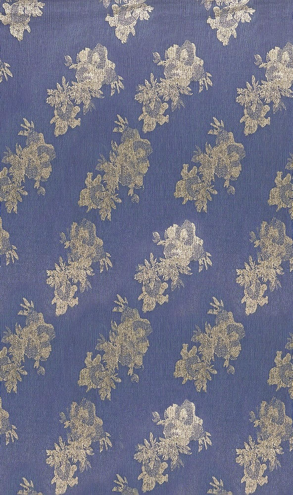 Pleated Metallic Gold Foil Fabric by the Yard in French Blue Gold Foil