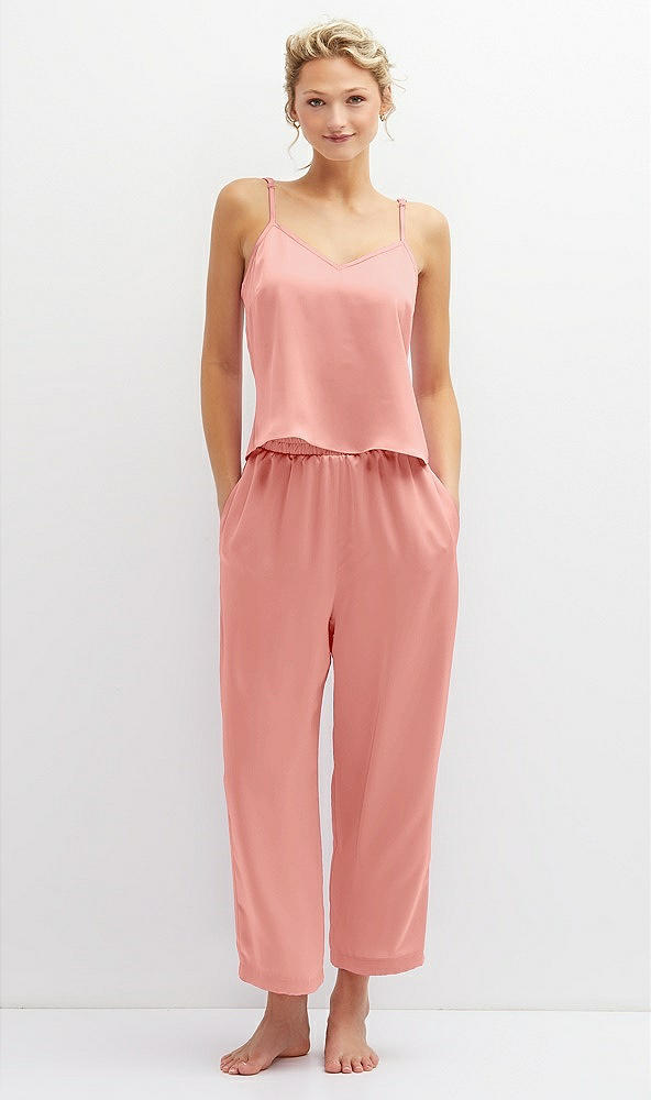 Whisper Satin Wide-Leg Lounge Pants with Pockets in Rose