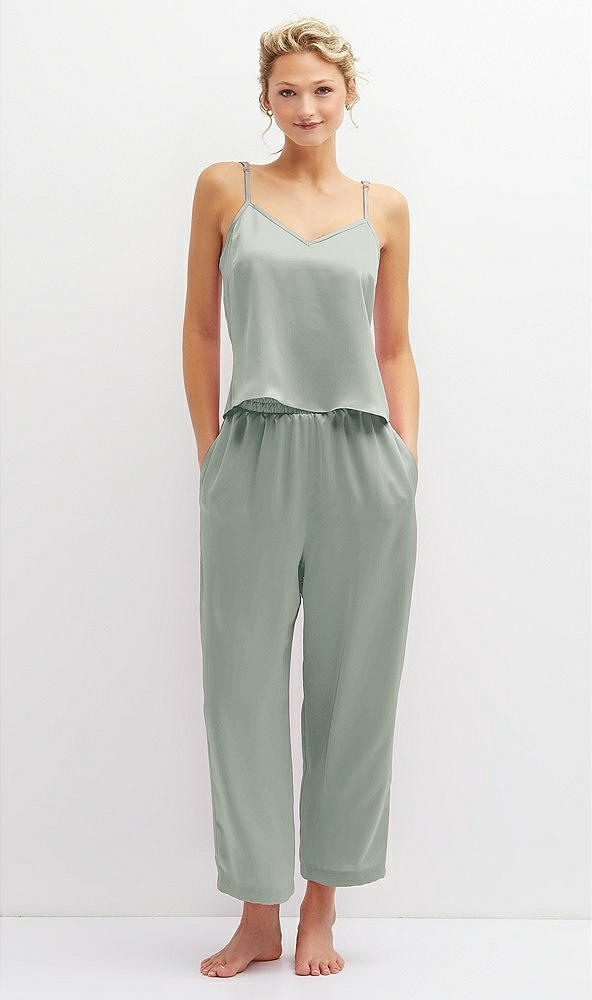 Whisper Satin Wide-Leg Lounge Pants with Pockets in Willow Green
