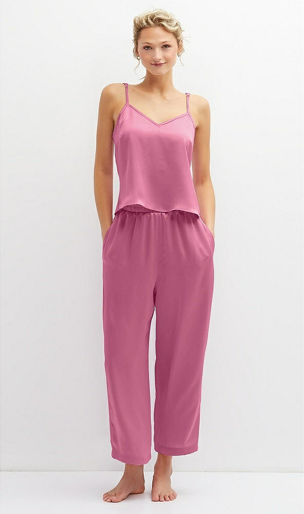 Whisper Satin Wide-Leg Lounge Pants with Pockets in Orchid Pink