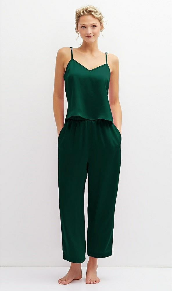 Whisper Satin Wide-Leg Lounge Pants with Pockets in Hunter Green