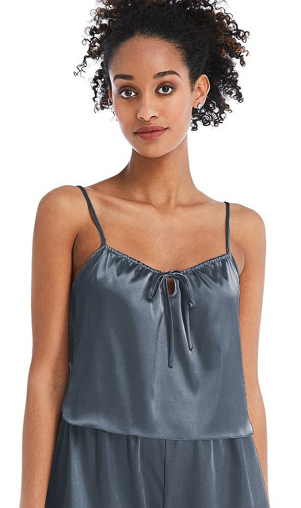 Alt View 1 Thumbnail - Silverstone Drawstring Neck Satin Cami with Bow Detail - Nyla