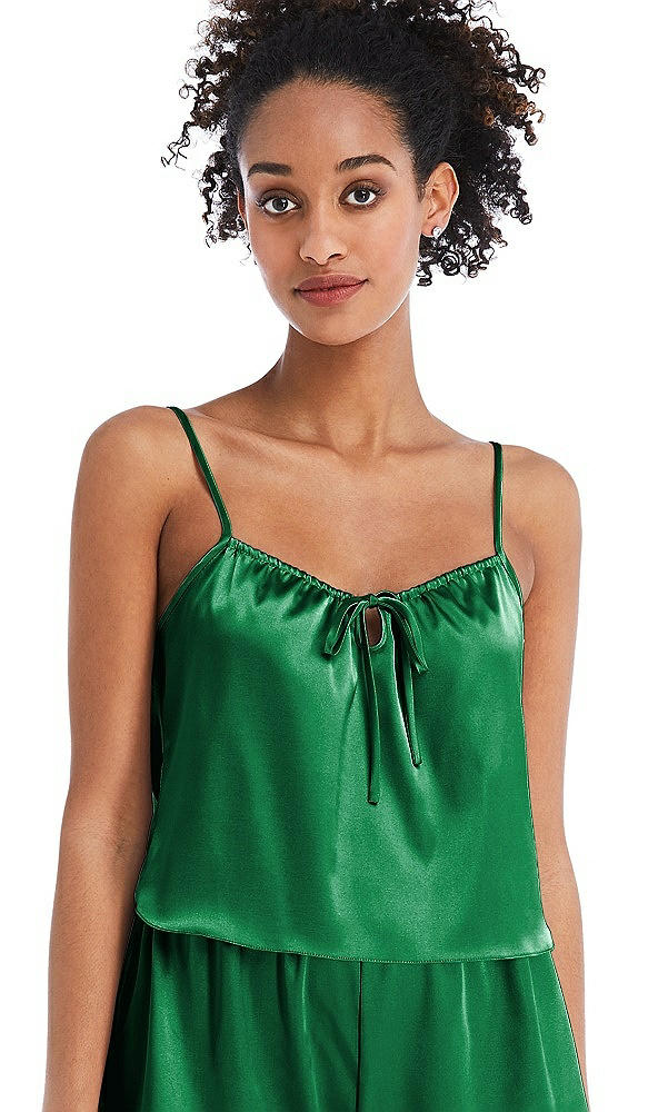 Front View Thumbnail - Shamrock Drawstring Neck Satin Cami with Bow Detail - Nyla