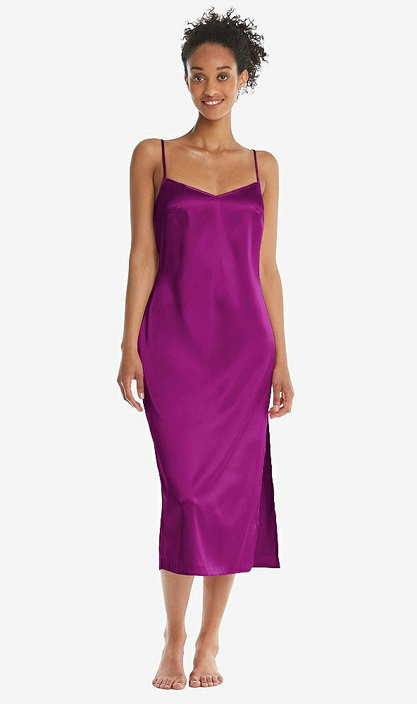 Midi Stretch Satin Slip with Adjustable Straps - Asley in Persian Plum
