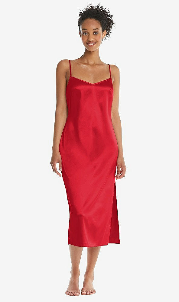 Midi Stretch Satin Slip with Adjustable Straps - Asley in Parisian Red