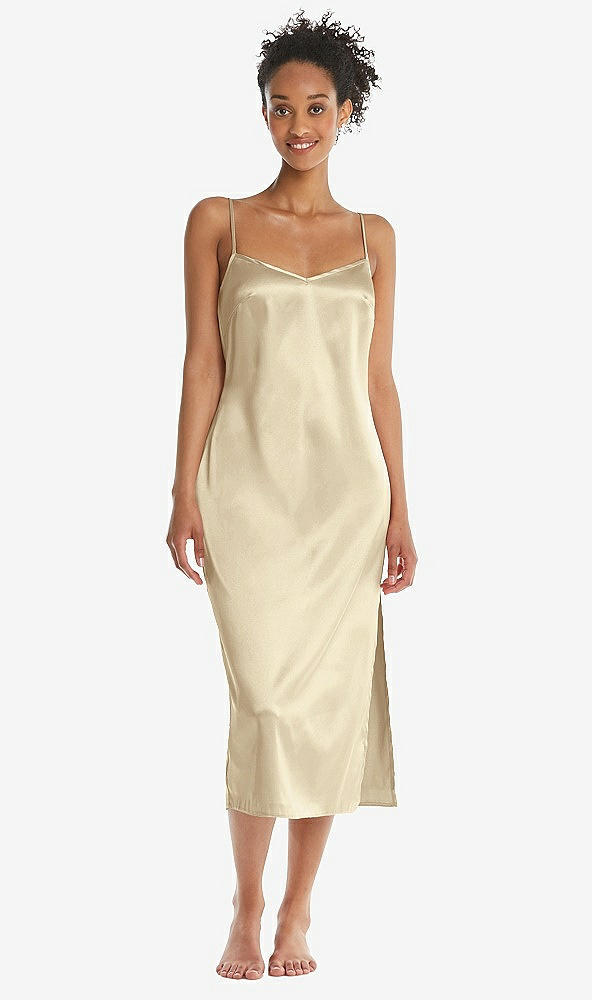 Front View - Banana  Midi Stretch Satin Slip with Adjustable Straps - Asley