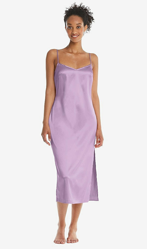 Midi Stretch Satin Slip with Adjustable Straps - Asley in Wood Violet
