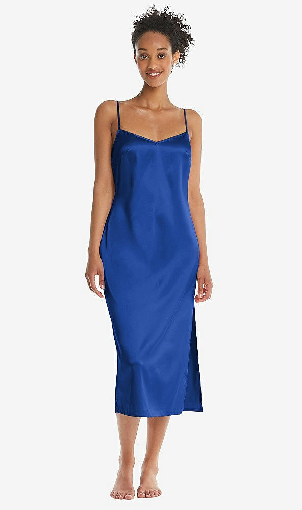 Side View - Sapphire  Midi Stretch Satin Slip with Adjustable Straps - Asley
