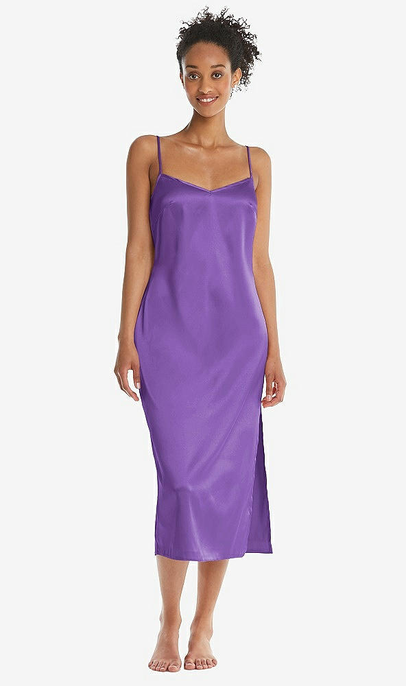 Midi Stretch Satin Slip with Adjustable Straps - Asley in Pansy