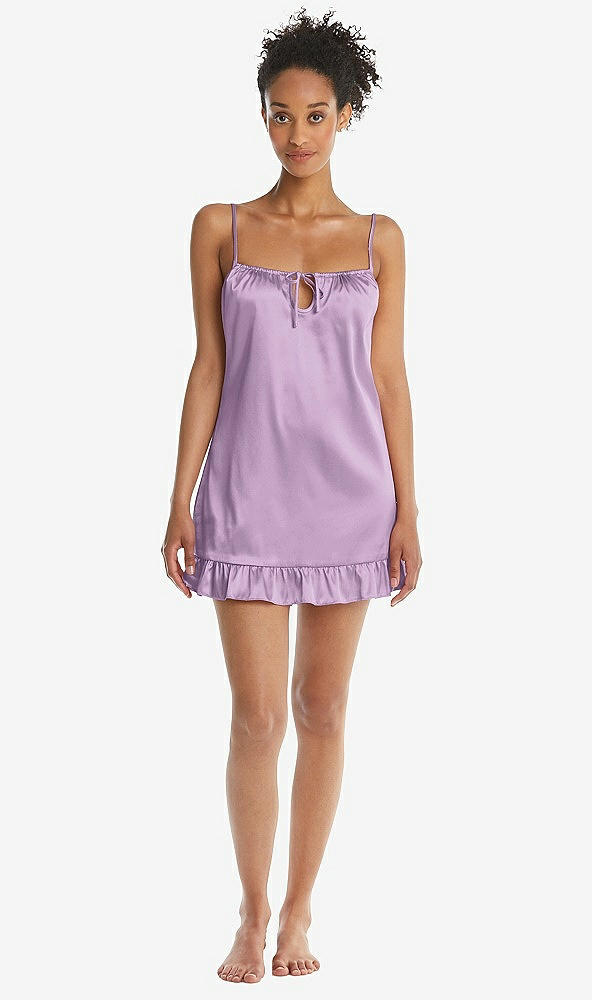 Ruffled Hem Mini Stretch Satin Slip with Keyhole Neck - Jordan in Wood Violet