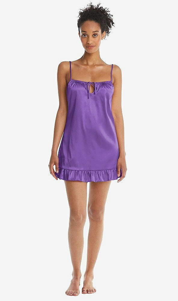 Front View Thumbnail - Pansy  Ruffled Hem Mini Stretch Satin Slip with Keyhole Neck - Jordan