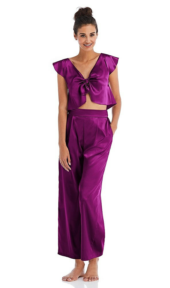 Satin Ankle Wide-Leg Lounge Pants - Vic in Persian Plum