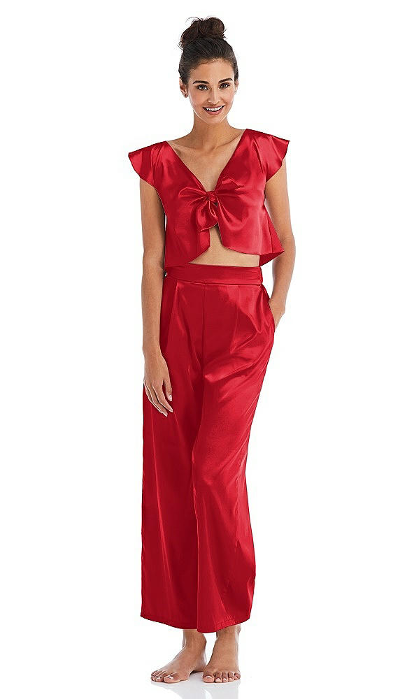 Satin Ankle Wide-Leg Lounge Pants - Vic in Parisian Red