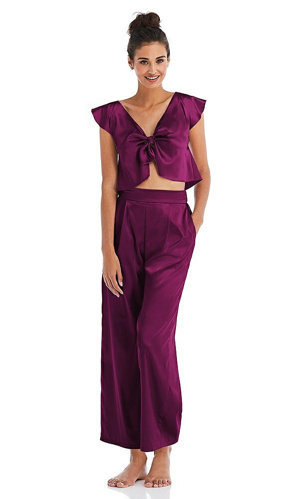 Satin Ankle Wide-Leg Lounge Pants - Vic in Merlot
