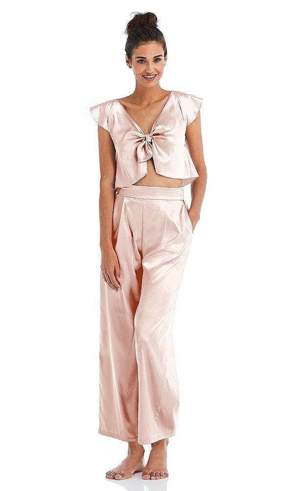 Front View Thumbnail - Blush Satin Ankle Wide-Leg Lounge Pants - Vic