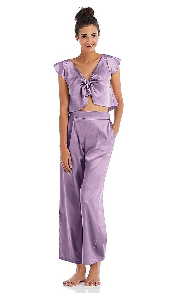 Front View - Wood Violet Satin Ankle Wide-Leg Lounge Pants - Vic