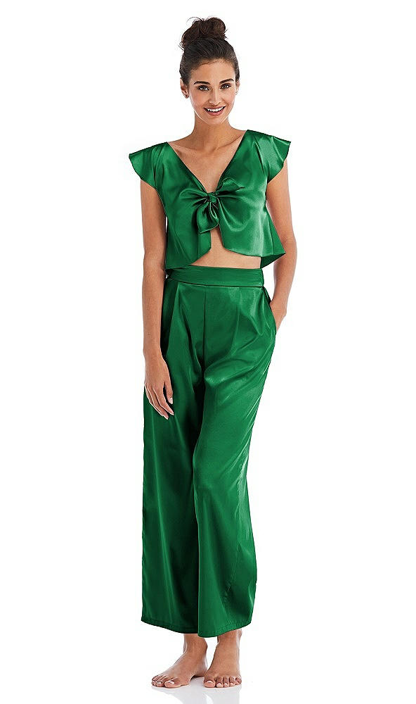 Front View Thumbnail - Shamrock Satin Ankle Wide-Leg Lounge Pants - Vic