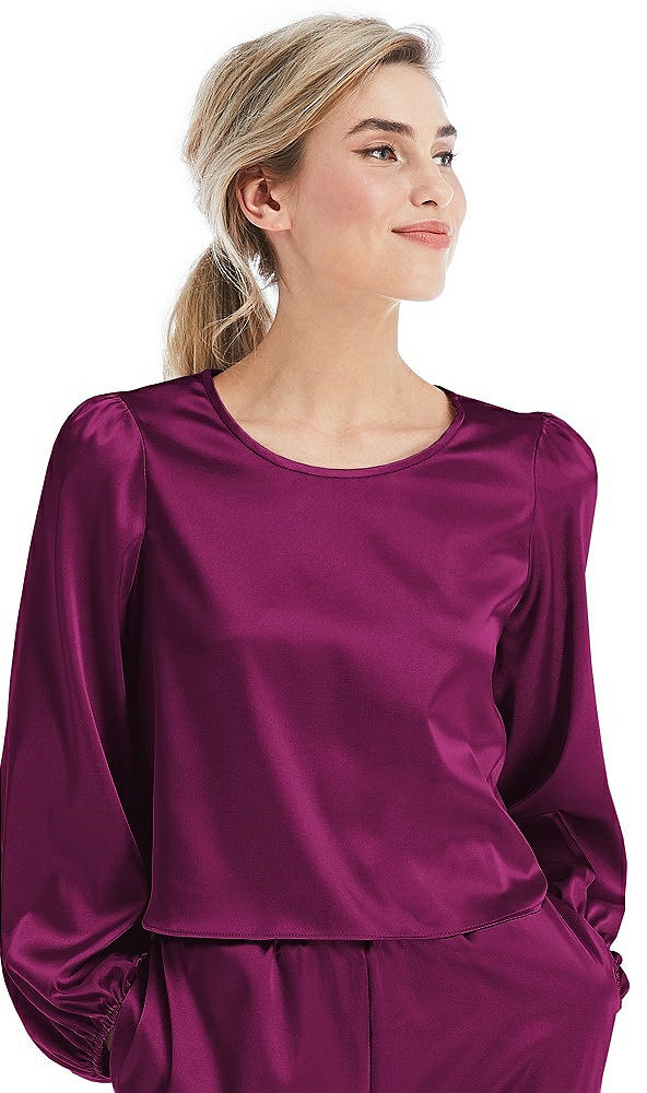 Satin Pullover Puff Sleeve Top - Parker in Merlot