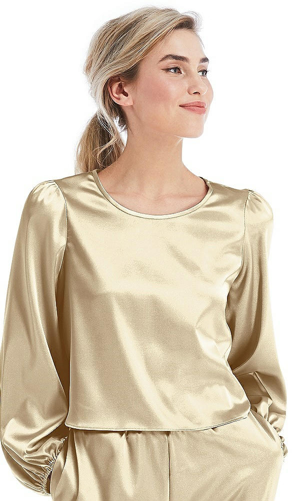 Satin Pullover Puff Sleeve Top - Parker in Banana