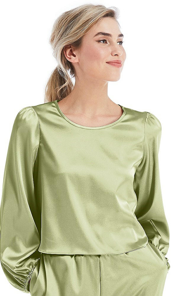 Satin Pullover Puff Sleeve Top - Parker in Mint