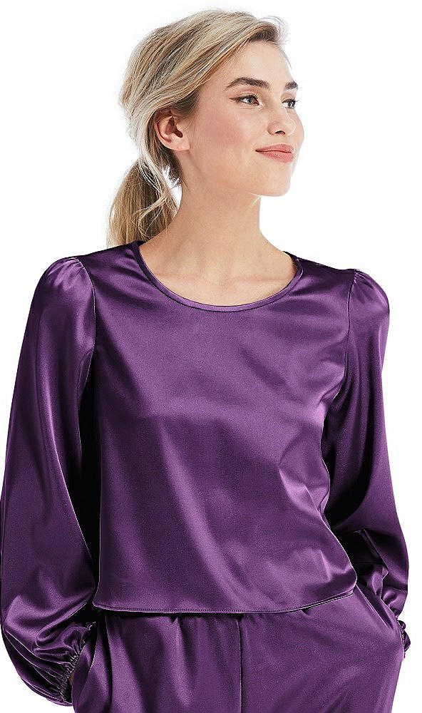 Satin Pullover Puff Sleeve Top - Parker in African Violet