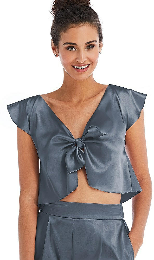 Satin Tie-Front Lounge Crop Top - Frankie in Silverstone