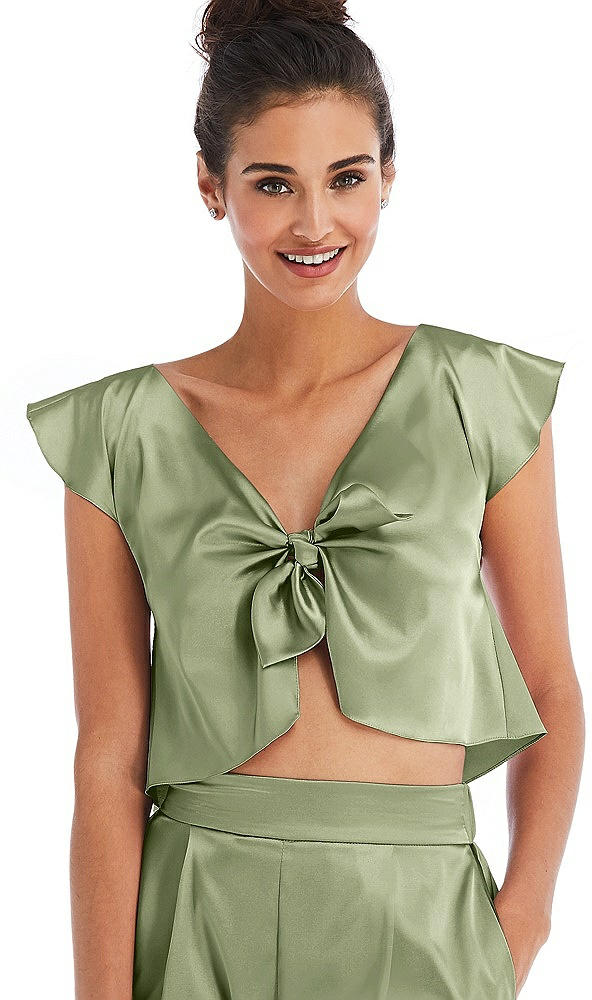 Alt View 1 - Kiwi Satin Tie-Front Lounge Crop Top - Frankie