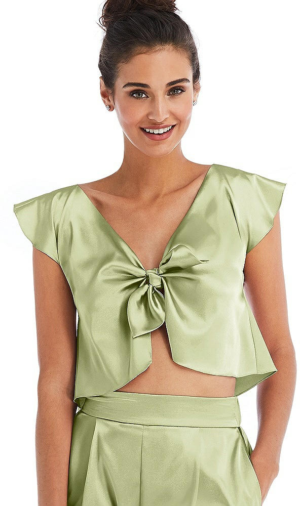 Alt View 1 - Mint Satin Tie-Front Lounge Crop Top - Frankie