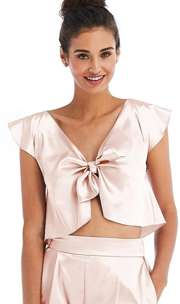 Front View Thumbnail - Blush Satin Tie-Front Lounge Crop Top - Frankie