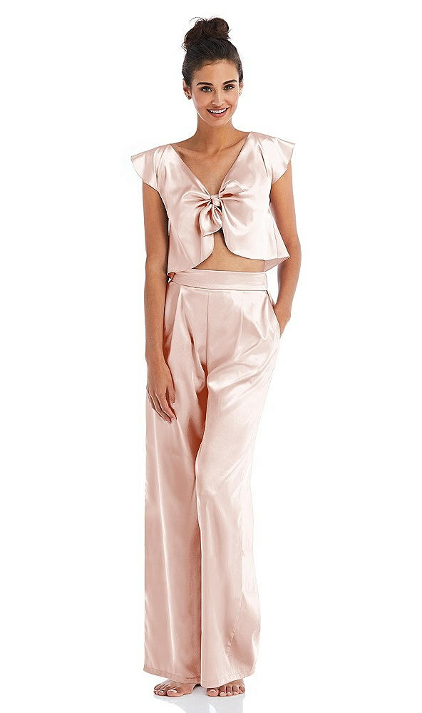 Satin Wide-Leg Lounge Pants with Pockets - Ray in Blush