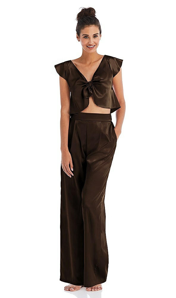 Front View - Espresso Satin Wide-Leg Lounge Pants with Pockets - Ray