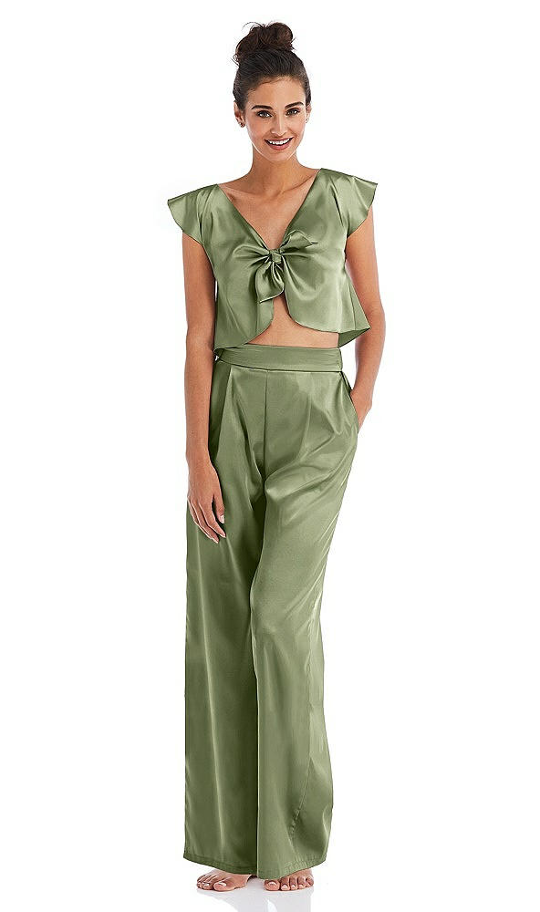 Front View - Kiwi Satin Wide-Leg Lounge Pants with Pockets - Ray