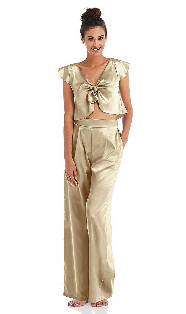 Front View Thumbnail - Banana Satin Wide-Leg Lounge Pants with Pockets - Ray