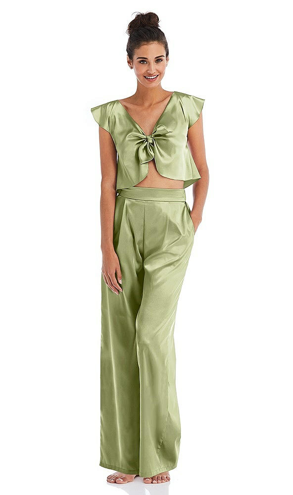 Satin Wide-Leg Lounge Pants with Pockets - Ray in Mint