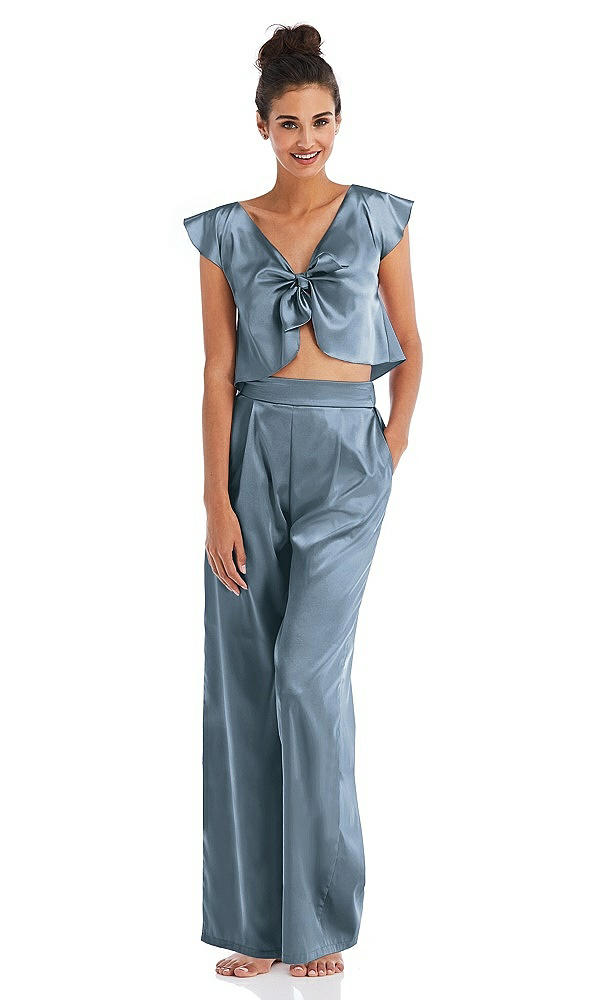 Front View Thumbnail - Slate Satin Wide-Leg Lounge Pants with Pockets - Ray