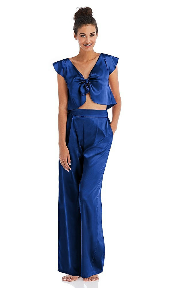 Front View Thumbnail - Sapphire Satin Wide-Leg Lounge Pants with Pockets - Ray