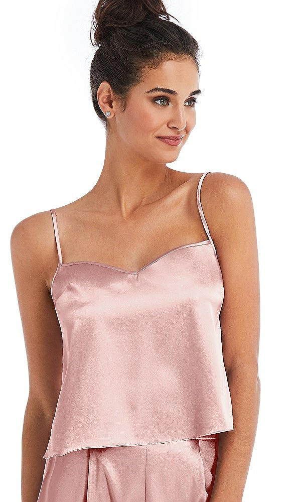 Cut from a silky stretch charmeuse fabric, this luxurious cami top offers a breezy feel with a flirty split back. A loose-cut hem and adjustable, slim straps offer a feminine charm.