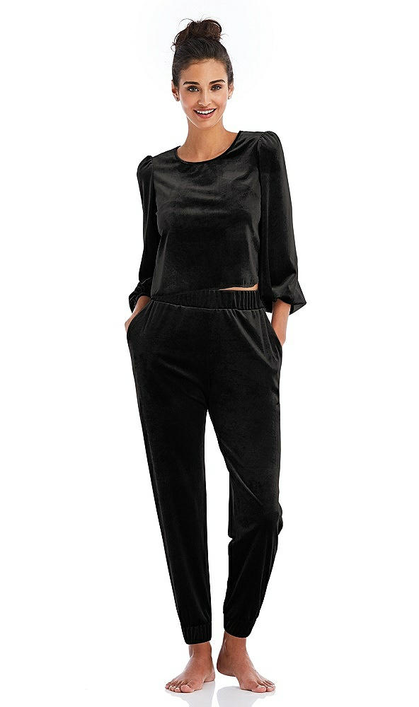 Front View Thumbnail - Black Velvet Joggers with Pockets - May