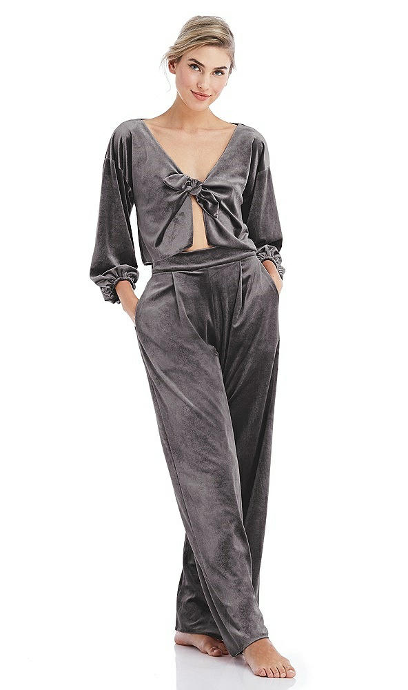 Front View Thumbnail - Caviar Gray Velvet Lounge Pants with Pockets - Cleo