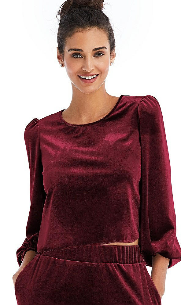 Velvet Pullover Puff Sleeve Top - Rue in Cabernet