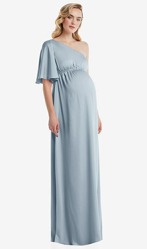 Side View - Mist One-Shoulder Flutter Sleeve Maternity Dress