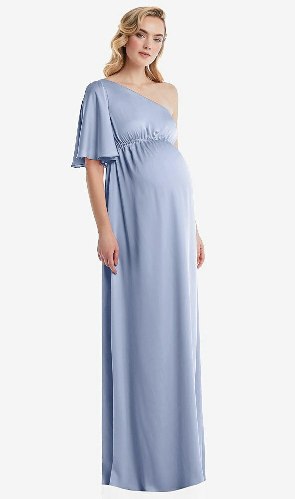 Side View - Sky Blue One-Shoulder Flutter Sleeve Maternity Dress