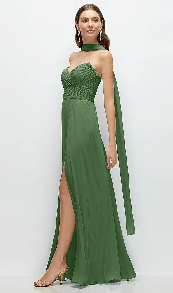 Front View - Vineyard Green Skinny Chiffon Scarf
