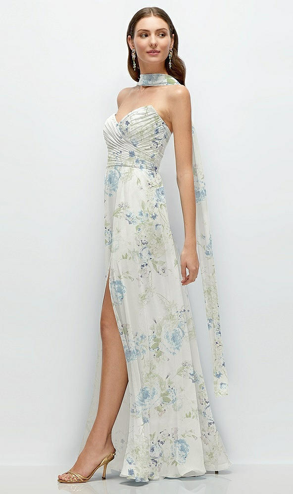 Front View - Bleu Garden Skinny Chiffon Scarf