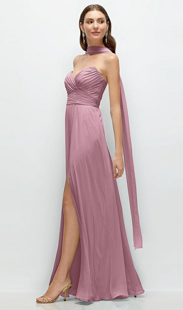 Front View - Dusty Pink Skinny Chiffon Scarf