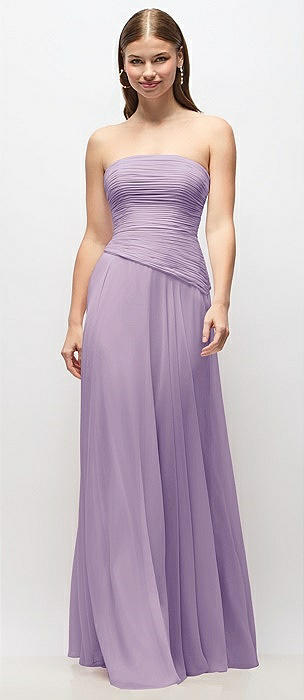 Strapless Chiffon Maxi Dress with Asymmetrical Ruched Drop Waist in pale purple