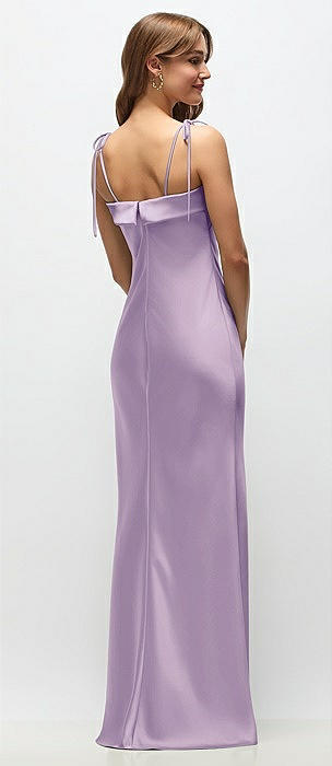 Cuff Neck Satin Bias Maxi Dress with Self-Tie Spaghetti Straps in pale purple