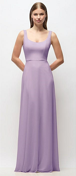 Scoop Neck Tank Strap Chiffon Maxi Dress in pale purple